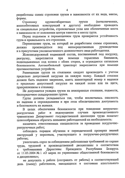 Информационное письмо о предупреждении несчастных случаев на производстве при выполнении погрузочно-разгрузочных работ